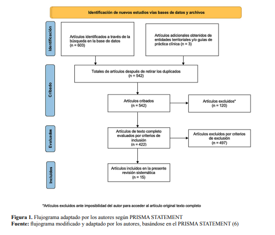 La segunda fase consistió en leer de forma individual los artículos seleccionados aplicando los criterios de inclusión y exclusión, los artículos escogidos se sometieron a la herramienta de lectura clínica CASPE para revisión sistemática, metaanálisis, revisión de tema, estado del arte, protocolo o ensayo clínico y evaluación de la calidad de la validez interna. Se realizó un flujograma según PRISMA STATEMENT (6)(Figura 1).