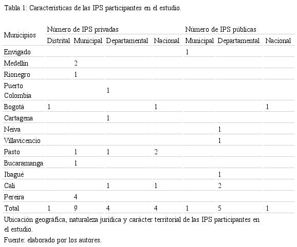elaborado por los autoresUbicación geográfica, naturaleza jurídica y carácter territorial de las IPS participantes en el estudio.