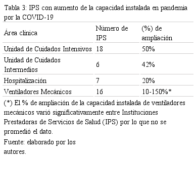 Tabla 3. IPS con aumento de la capacidad instalada en pandemia por la COVID-19