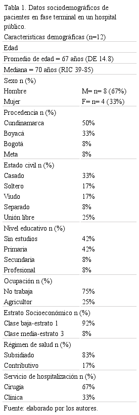 Tabla 1. Datos sociodemográficos de pacientes en fase terminal en un hospital público.