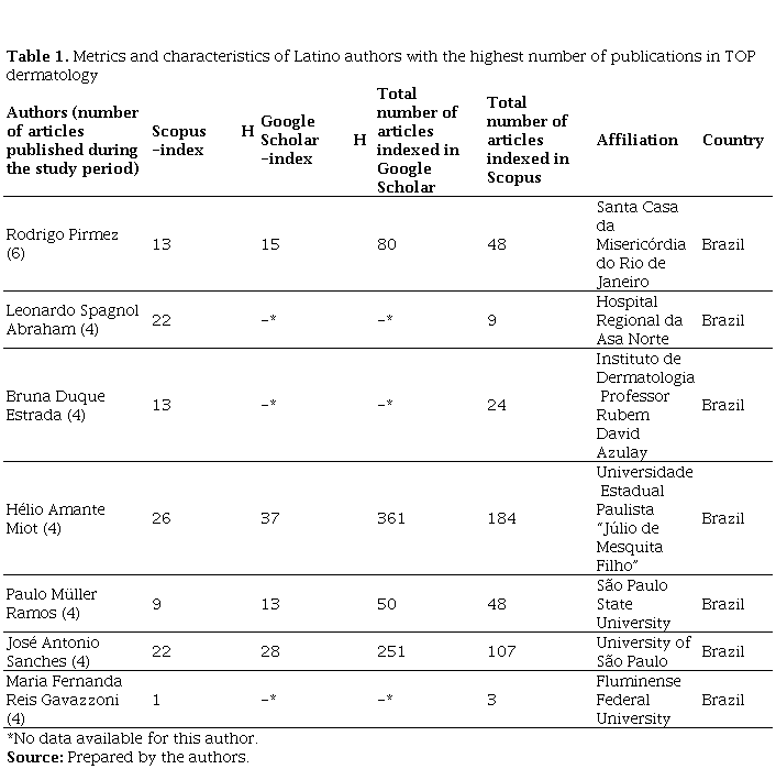 Keywords: Dermatology, Bibliometrics, Authorship in Scientific Publications, Scholarly Communication, Hispanic or Latino.