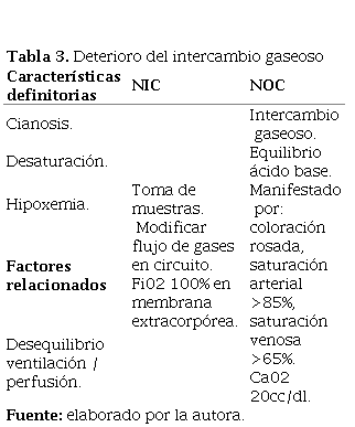 Tabla 3. Deterioro del intercambio gaseoso