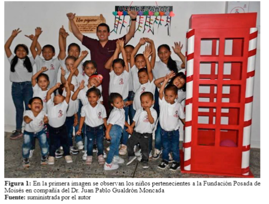 (Figura 1) La imagen de la portada de la edición especial de pediatría hace parte de una experiencia de voluntariado social que realizo como pediatra en formación en la Fundación Posada de Moisés, una institución sin ánimo de lucro, creada en la ciudad de Medellín hace 21 años, con el objetivo social de prestar servicios de desarrollo integral a niñas, niños y adolescentes víctimas del desplazamiento forzado en Colombia, sin distinción de raza,