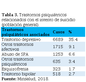 Tabla 3. Trastornos psiquiátricos relacionados con el intento de suicidio (población general).