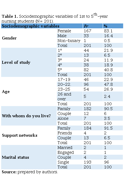 Table 1. Sociodemographic variables of 1st to 5th-year nursing students (N= 201).