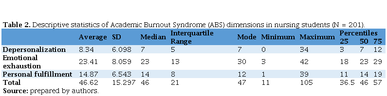 Table 2.Descriptive statistics of Academic Burnout Syndrome (ABS) dimensions in nursing students (N = 201).
