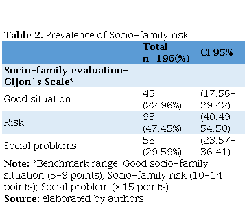 Source: elaborated by authorsNote: *Benchmark range: Good socio-family situation (5-9 points); Socio-family risk (10-14 points); Social problem (≥15 points).
