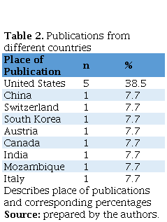Source: prepared by the authorsDescribes place of publications and corresponding percentages