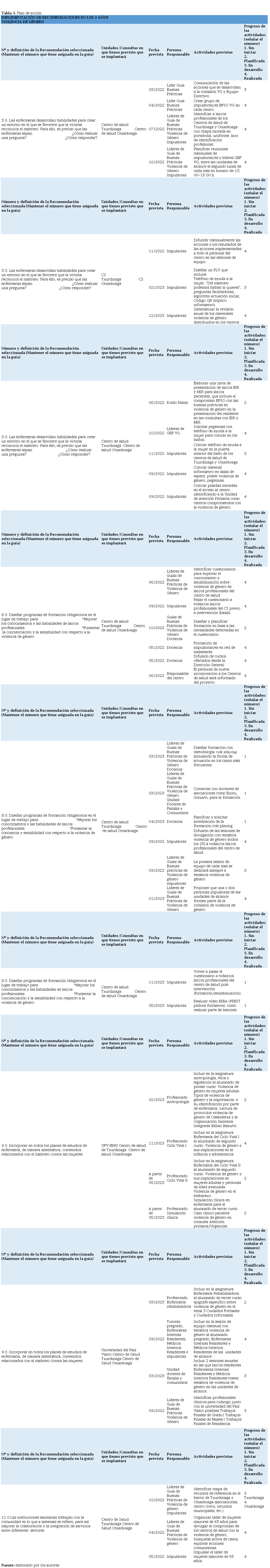 Fuente: elaborado por los autores.Se seleccionaron las recomendaciones de la GBP a implementar. Se definieron y consensuaron también las acciones específicas a desarrollar.