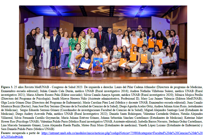 Gracias a la revista MedUNAB por permitirme alcanzar mis sueños haciéndome parte del suyo, y exhorto a todos nuestros lectores a seguir aportando con pasión a la construcción de este gran proyecto, pues, así como marcó mi vida, puede transformar también sus propias realidades.