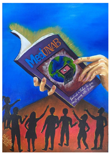 En la obra se insinúan, además, unos haces de luz que aluden al conocimiento científico de alta calidad. El hecho de ser una revista evaluada por pares a doble ciego, indexada en cerca de 30 bases de datos internacionales, y con el reciente ascenso en la clasificación SJR, nos permite afirmar con certeza que difundimos conocimiento que genera impacto, no solo en el área de la salud, sino en los diferentes entornos académicos y en nuestra sociedad. En la imagen se observa un computador superpuesto sobre la tierra, que indica nuestra transición de formato físico a digital, en un mundo cada vez más sumergido en la tecnología, así como nuestro compromiso con el ambiente, para crear y difundir conocimiento sostenible, que tenga el menor impacto en el planeta.