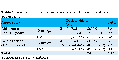 Table 2.Frequency of neutropenia and eosinophilia in infants and adolescents.