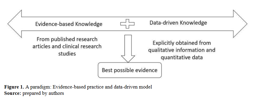 Evidence-based practice (EBP) in nursing and AI-powered techniques are two significant scientific methodologies. EBP relies on scientific knowledge by synthesizing evidence through a well-defined methodology, while AI techniques rely on data-driven knowledge generation (4). Although EBP and data-driven knowledge represent distinct approaches, their integration aims to support nurses and interprofessional teams using EBP with data-driven solutions, ultimately enhancing patient care.