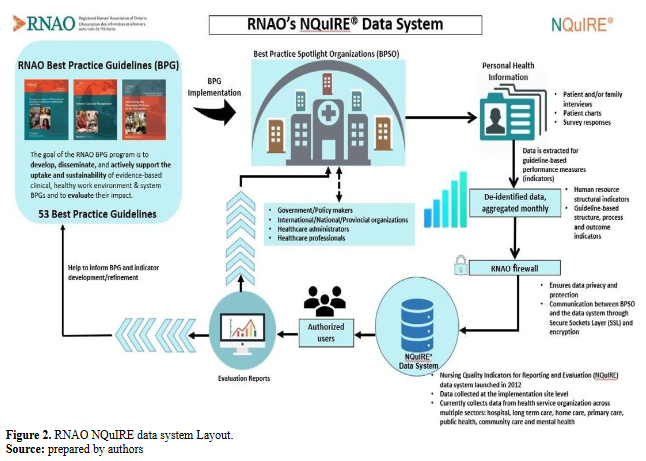 Figure 2illustrates a complete cycle of information flow from RNAO BPGs to healthcare organizations and back to the RNAO NQuIRE data system that supports future implementation of AI-tool.