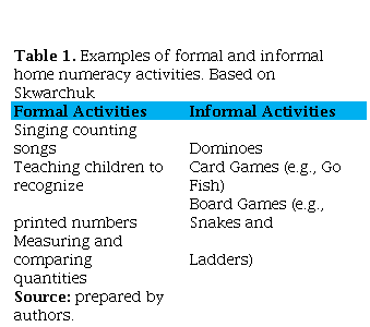 Table 1. Examples of formal and informal home numeracy activities. Based on Skwarchuk
