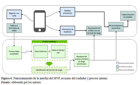 El PMV implementado incluyó ingreso estructurado de datos de incidentes, módulo básico de análisis predictivo con ML y visualización gráfica de eventos. A pesar de no integrar aún interoperabilidad con historiales clínicos institucionales, esta versión permitió validar la funcionalidad básica y la aceptación definitiva del prototipo por parte del personal de tres ELEAM, alineándose con prácticas recomendadas en el desarrollo de tecnologías sanitarias (25).