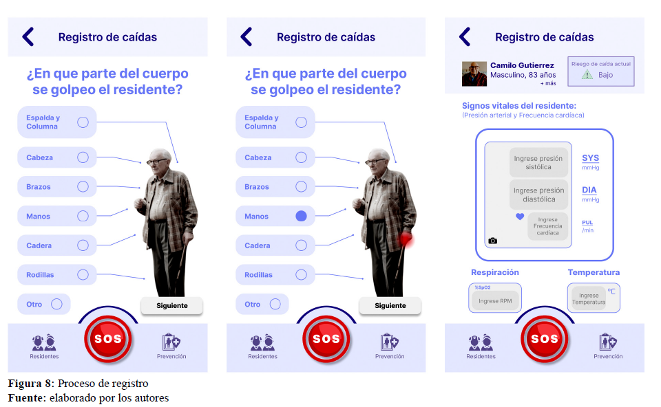 Resumen: Introducción. Las caídas en personas mayores institucionalizadas representan un problema de salud pública subestimado, asociado a discapacidad, dependencia y mortalidad. En Chile, la ausencia de registros estandarizados en establecimientos de larga estadía para adultos mayores (ELEAM) limita la prevención efectiva. Este estudio tuvo como objetivo diseñar un prototipo de sistema digital de registro de caídas basado en aprendizaje automático, o machine learning (ML), para su implementación en ELEAM. Metodología. Se empleó la metodología de diseño de doble diamante en cuatro fases: a) identificación de actores y levantamiento de información mediante entrevistas cualitativas; b) análisis de causas y priorización de ideas con matrices Analytical Hierarchy Process (AHP) y Pugh; c) diseño conceptual y generación del producto mínimo viable (PMV), y d) elaboración de prototipos para validación de usabilidad. Resultados. Se evidenció una gran heterogeneidad en los registros actuales y ausencia de análisis posterior de datos. Se desarrolló un PMV que incluye un formulario de registro de caídas, visualización de medidas preventivas, perfiles de usuario diferenciados y herramientas educativas. El sistema fue validado internamente por cuidadores, directivos y profesionales de salud en ELEAM. Discusión. El uso de ML permitiría automatizar el análisis de datos y personalizar medidas preventivas. El diseño participativo y el enfoque preventivo fueron claves para su aceptabilidad. Conclusiones. El prototipo desarrollado tiene potencial para optimizar el registro de caídas en ELEAM, mejorar la prevención y fortalecer la atención en personas mayores institucionalizadas.
