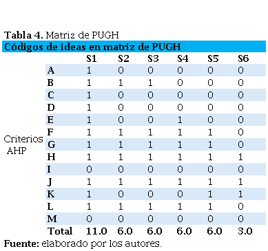 Los requerimientos y sus pesos se presentan en la Tabla 2 y la Tabla 3, respectivamente, mientras la comparación de alternativas se resume en la Tabla 4.