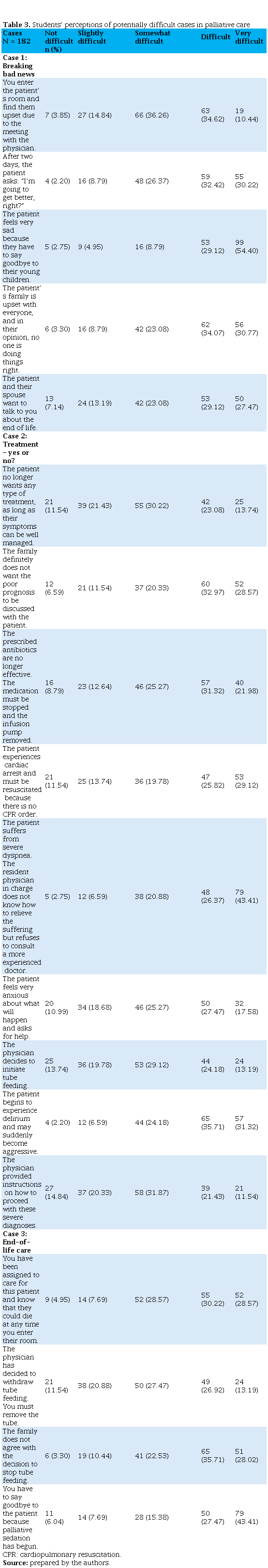 Table 3.Students’ perceptions of potentially difficult cases in palliative care