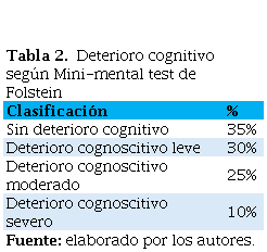 Tabla 2. Deterioro cognitivo según Mini-mental test de Folstein