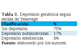 Tabla 3.Depresión geriátrica según escala de Yesavage
