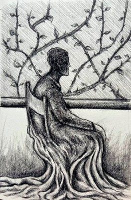Principalmente, la idea es representar la soledad y el olvido al que están condenadas las personas de la tercera edad en los asilos para ancianos. Como se puede observar, la señora, se ha mezclado tanto con la naturaleza que se ha vuelto parte de ella, da la impresión de que estuviese petrificada desde un sentido figurado debido a la emoción tan intensa del abandono. Las ramas con espinas imponen la idea de estar encerrada en una cárcel. El rostro de la señora es prácticamente irreconocible, de hecho, no es necesario darle una identidad. Todos podríamos ser ella, no tiene voz ni nombre y quizá tampoco le interesa tenerlo. ¿De qué le serviría? ¿Con quién podría hablar y decir cómo se siente? Ha dejado de mirar por la ventana. Nadie vendrá a verla.