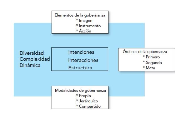 Stoker (2008) fundamenta la teoría de la gobernanza en cinco proposiciones, mientras que Sánchez (2012) analiza la gobernanza interactiva, corporativa, local y global. Por su parte, Kooiman et al. (2008) se centran en la gobernanza interactiva y propone el modelo desarrollado en la figura 1.