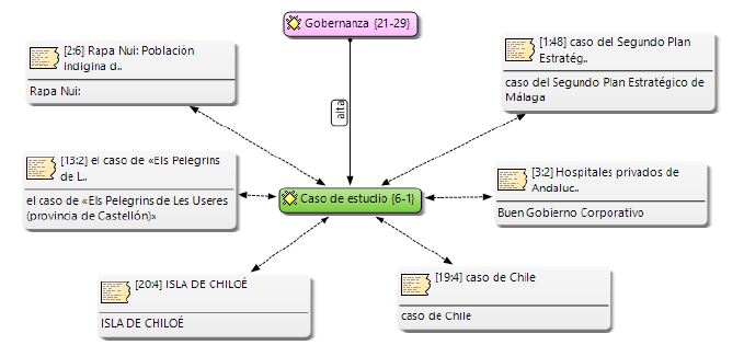 Para el análisis cualitativo del contenido de artículos seminales se utilizó el software Atlas.Ti7, versión 7.5.16 y se aplicó el siguiente criterio de inclusión en la búsqueda en Scopus: TITLE (governance) AND (LIMIT-TO (LANGUAGE, Spanish) AND (LIMIT-TO (PUBYEAR, 2019) AND (LIMIT-TO (ACCESSTYPE(OA))) AND (LIMIT-TO (DOCTYPE, "ar")) AND (LIMIT-TO (SUBJAREA, "SOCI")). Bajo este criterio se seleccionaron los 24 artículos de contenido más citados según el propio orden de Scopus y se descargó la base de datos en formato Excel. Se descartaron dos artículos por estar basados en libros y se utilizaron 22 que se ingresaron en una unidad hermenéutica en el programa referido. Se estudió por documento el contenido y se codificó utilizando las palabras clave que referencian la temática, se visualizaron las conexiones y mapa de redes en cuatro figuras generadas por el propio programa: red temática en relación con la gobernanza, red gobernanza versus casos de estudios, red gobernanza versus medio ambiente y red gobernanza versus gobernanza global.
