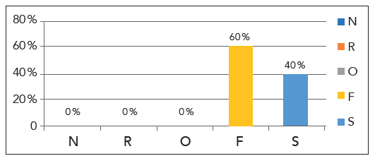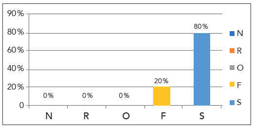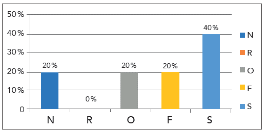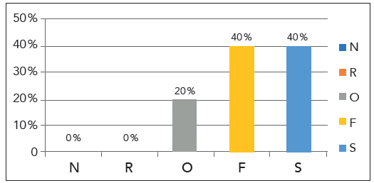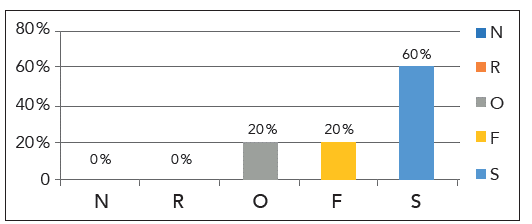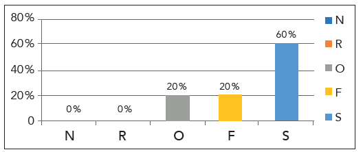 Las opiniones sobre estimular la competencia entre grupos de trabajo al interior de la COAC son variadas: el 20 % nunca (N) lo haría, otro 20 % procedería ocasionalmente (O), un 20 % lo permitirían con frecuencia (F) y un importante 40 % lo ven como una alternativa que siempre (S) se ejecutaría. (figura 5).