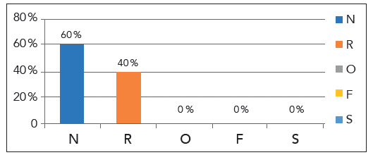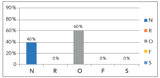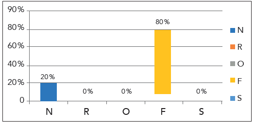 De acuerdo con la figura 9, por parte de los directivos de la cooperativa, en su mayoría, el 60 % nunca (N) admite que sus colaboradores incurran en retrasos o aplazamientos de las tareas asignadas, y el 40 % admite que lo permitiría rara vez (R). Esto marca una clara preocupación por las tareas, como lo revela la malla gerencial (figura 1), asimismo la presencia de una política a favor de la eficiencia del recurso tiempo.