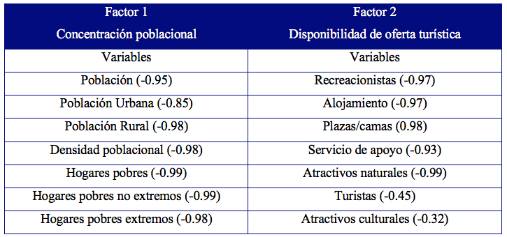 El análisis de componentes principales se empleó como una técnica estadística multivariante cuyo resultado es agrupar un gran número de variables para su manejo posterior; se puede destacar que el primer factor concentra el 52,09 % de variabilidad de los datos, mientras que el segundo factor concentra el 27,09 % de variabilidad, con analizar estos dos factores se consideraría el 79,18 % del conjunto de los datos. De esta manera, las variables asociadas al factor 1 y al factor 2, según las coordenadas dadas a cada una de ellas quedan de la siguiente manera: