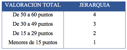 La evaluación de cada criterio tiene una ponderación y varía en función de la operatividad del recurso, es decir, se considera si el recurso se encuentra en operación o no está en operación, de esta manera se procede a la sumatoria de la ponderación de los criterios a los diferentes atractivos turísticos existentes en la subregión Barlovento, para obtener la jerarquización de estos atractivos cuyos niveles van entre 1 (menores de 15 puntos) hasta 4 (De 50 a 60 puntos), describiéndose como recursos sin méritos suficientes o como atractivos turísticos excepcionales y con gran significación para generar importantes corrientes de visitantes (Mincetur, 2008) (figura 3).