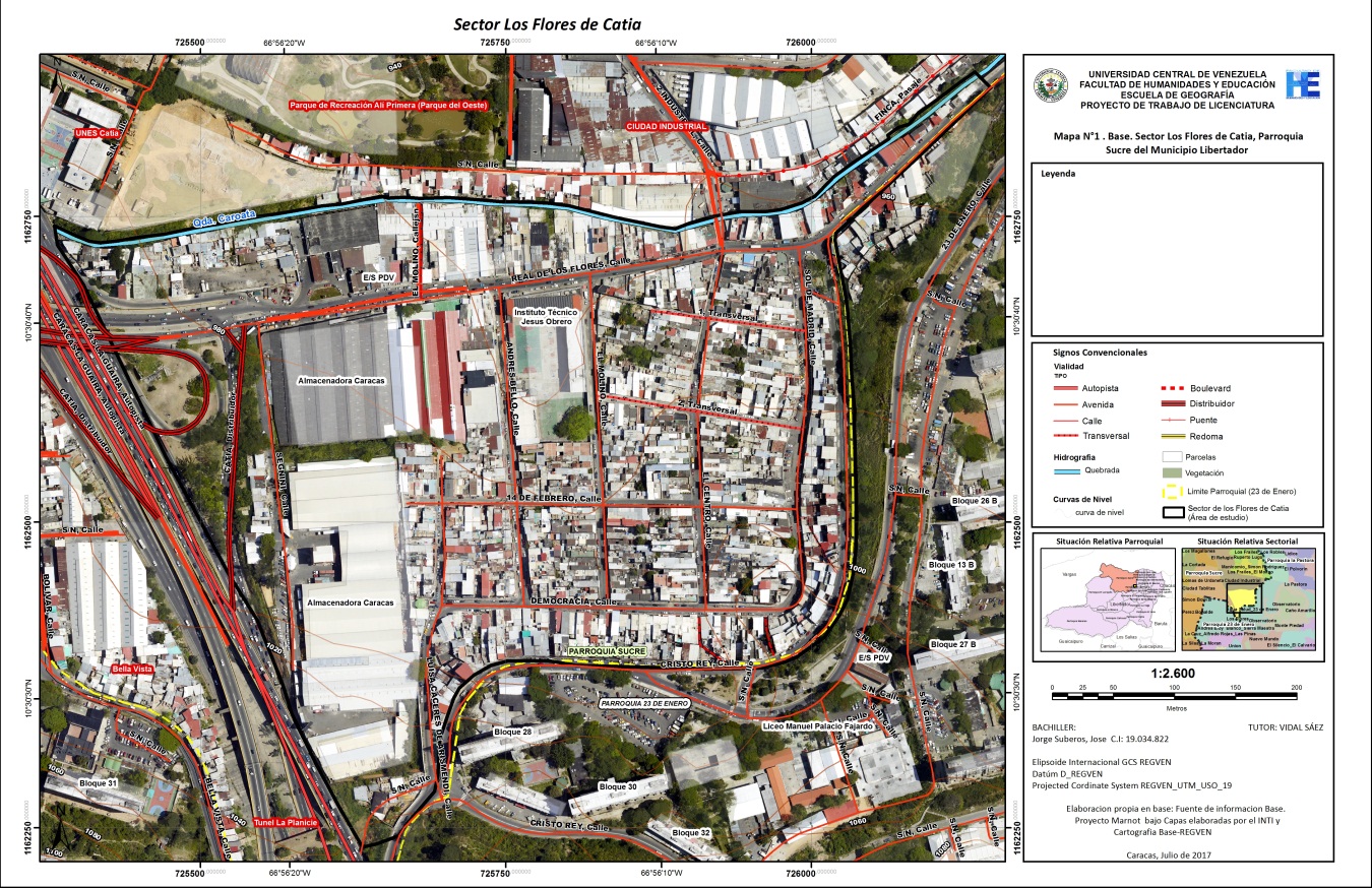 La geografía del delito es muy amplia, se trabajó desde el ámbito espacial tomando en consideración criterios de la percepción ciudadana, con la finalidad de que los residentes del sector de Los Flores de Catia y los funcionarios públicos asignados al resguardo de la zona, vean el contexto y la tendencia delictual desde la perspectiva de la cartografía y el análisis de variables geográficas.