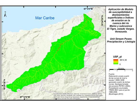 Un caso que llama la atención es la subcuenca de la Quebrada El Tigre, la cual presenta gran cantidad de deslizamientos registrados en los años 1952, 1999, y 2005 (Courtel, 2008), además de valores notables de erosión (USP-SSP). Lo que podría explicarse porque en las nacientes de la misma predominan: 1) litología de material esquistoso; 2) vegetación de matorral (por intervención humana); 3) geomorfología cóncava, 4) una alta intervención humana en sus cabeceras ya que allí se encuentra el urbanismo llamado “Ciudad Caribia”, cuyos trabajos de construcción empezaron en el año 2008.