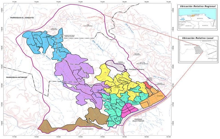De acuerdo a la delimitación territorial, definida bajo el criterio de unidad territorial homogénea, se obtuvo un área de 672,59 hectáreas, donde existen, según el IMGRAD (2015), un total de 10.346 edificaciones de uso residencial y habitan 70.695 personas, distribuidas en 17.683 familias. Desde el punto de vista organizativo comunitario, en la zona urbana de la subcuenca Mamera (figura 1) se encuentran activas siete (7) comunas, y se han conformado 66 organizaciones comunitarias (Consejos Comunales, Comité de Tierra Urbana).