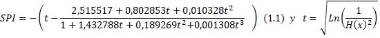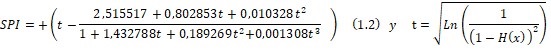 Si H(x) ≤ 0,5 en (1.1) la fórmula del SPI lleva signo menos y el SPI será negativo: