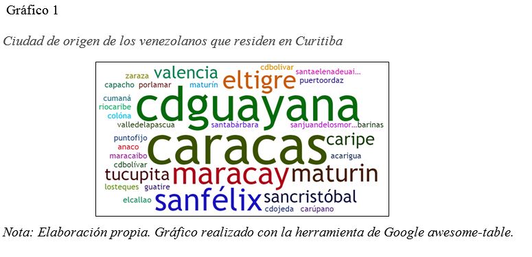 Se preguntó además ¿vivió en otra ciudad brasileña antes de Curitiba?, donde 47 personas (64,4%) respondieron que sí frente a 26 que no. De estas personas, 35 vivieron en Boa Vista, 5 en Manaus, 3 en Pacaraima y las demás en otras capitales brasileñas como Florianópolis y Rio de Janeiro. En otras palabras, más de la mitad de los migrantes encuestados vivió en la región norte del país, lo que implica un proceso de re-emigración o desplazamiento migratorio para ciudades que consideran ofrecen mejores condiciones para el establecimiento familiar.