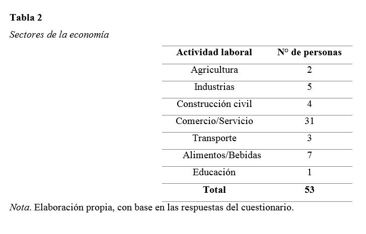 De las respuestas dadas, resaltan la profesión de profesor en instituciones de educación básica y media con 6 personas encuestadas. 5 personas respondieron ser barberos y otros 5 administradores. Destacan también las ocupaciones de obrero, comerciante y estudiante con 4 personas respectivamente. Esto indica que la migración venezolana tiene un perfil de profesionales calificados y con experiencia laboral. Por otra parte, se preguntó a los venezolanos ¿si ya trabajaron en la ciudad de Curitiba?, de las 73 personas, 59 respondieron de manera afirmativa, mientras que 14 negaron haber trabajado en la ciudad.