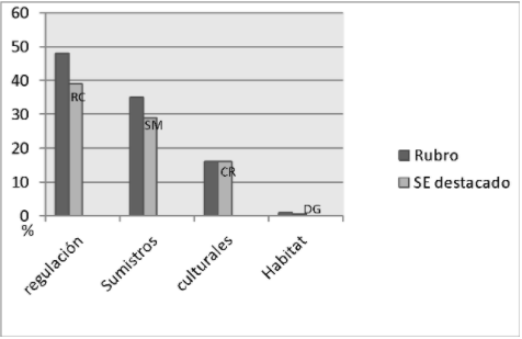 En primera instancia, se debe resaltar que alrededor del 48 % debe contabilizarse en el gran rubro de servicios de regulación, en el que, como referimos más arriba, sobre destaca la regulación climática (RC) que representa el 38 % del total de los Servicios Ecosistémicos (SE) del Bosque Tropical (BT) y el 80 % del rubro regulación. Se debe enfatizar que solo el vapor de agua que se produce en cuenca del Amazonas, es clave del ciclo hidrológico planetario y por lo tanto del clima mundial.