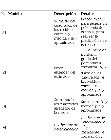 Las Tablas 1 y 2 presentan los modelos y métodos empleados en la presente investigación que se consideran dinámicos por su carácter predictivo.