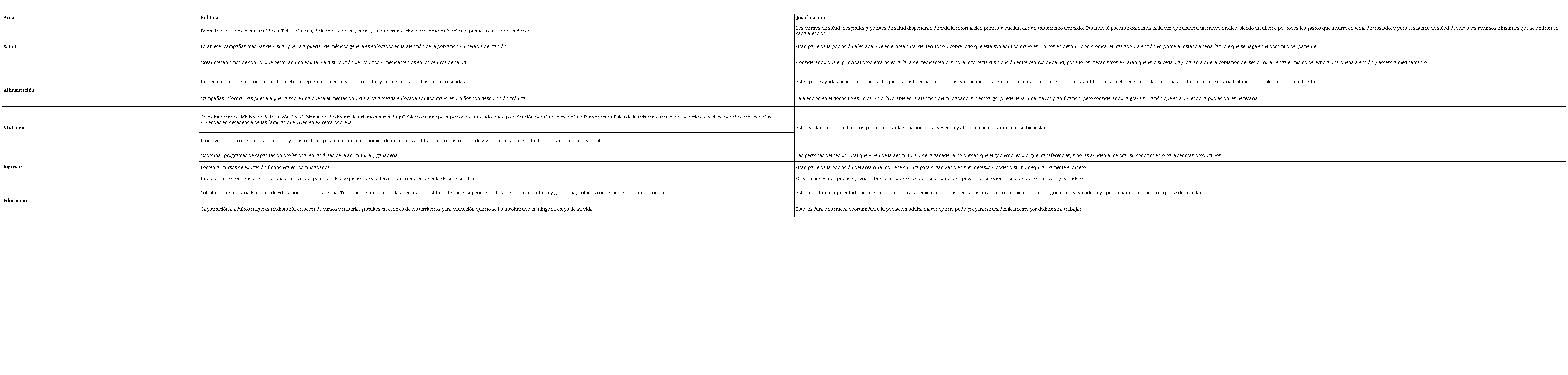 Los principales problemas de las personas pobres no son los ingresos, como tal, tampoco la ayuda que más requieren constituye una transferencia monetaria, bonos del estado o cualquier donativo que tenga que ver con dinero. Sino más bien, la incapacidad de generar por su cuenta propia ingreso, que los imposibilita a vivir adecuadamente, es por ello por lo que necesitan contar con un sistema de salud óptimo, es decir, con disponibilidad de medicamento, especialistas médicos, que tengan la voluntad y el compromiso de atender a población adulta en estado crítico y que se encuentra en el último rincón del área rural.