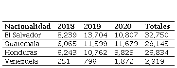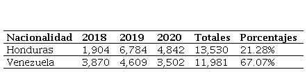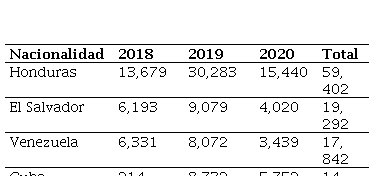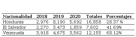 Al hacer una comparativa de las principales nacionalidades de solicitantes de la condición de refugiado en el periodo 2018-2020 en México, resalta la nacionalidad hondureña como la de mayores solicitantes, seguido de la salvadoreña y la venezolana.