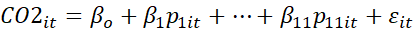 De esta forma, la ecuación (1) pretende establecer la relación entre el índice de sostenibilidad y los pilares mencionados esperando que, a medida que se mejoren los resultados de cada uno, se logre un desempeño óptimo en términos de sostenibilidad. En la ecuación (2) se estima la influencia de dichos pilares en las emisiones de CO2, si se logran mejoras en innovación que conduzcan a procesos circulares, es de esperar que los niveles de contaminación se reduzcan y en especial las emisiones de CO2.