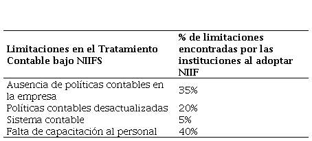 Las limitaciones identificadas en la aplicación de las Normas Internacionales de Información Financiera (NIIF) en instituciones de salud, ofrecen una visión detallada de los desafíos que enfrentan en su tratamiento contable (ver tabla 2).