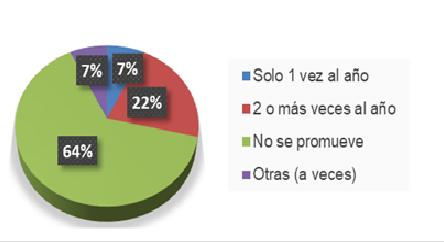 El papel que juega la familia consanguínea es relevante para el arraigo de la identidad cultural, mediante la realización de reuniones familiares que prioricen el uso de la lengua chontal como medio de comunicación entre los participantes. Sin embargo, el 64% de los encuestados reconocieron que no celebran este tipo de reuniones, este dato llama la atención, ya que la familia, que es el lugar principal donde se promueve el uso de la lengua, no crea las condiciones para su uso. Si la familia no lo promueve, es porque no le da función social y eso resulta en el poco uso fuera del hogar, aun cuando en el discurso los jóvenes le den importancia. Esto denota una actitud o comportamiento contraria a la comunidad, ya que el prestigio ocurre por la función social que cumple, no porque se diga que es importante hablarlo, disminuyendo así el grado de vitalidad necesario para la preservación de la lengua chontal (Figura 1).