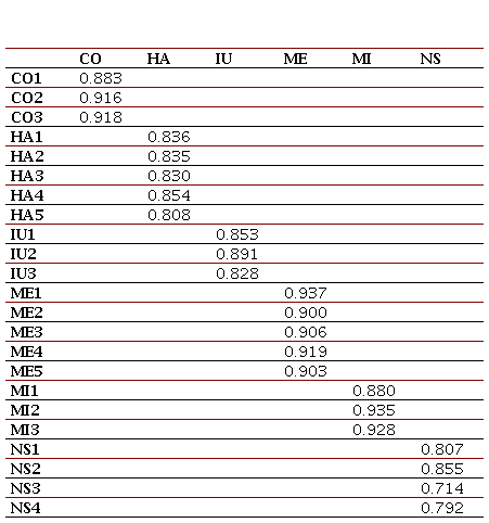 Los resultados mostrados en la Tabla 4 indican que los valores en la diagonal, correspondientes a la raíz cuadrada del AVE, son mayores que las correlaciones entre los constructos. Esto confirma que el modelo cumple con los requisitos de validez discriminante, asegurando que los constructos están adecuadamente diferenciados y no están excesivamente correlacionados.