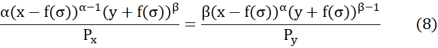 ) y sus correspondientes valores óptimos de consumo (𝑥,𝑦), es posible determinar los valores específicos de la función 𝑓(𝜎) en esos tres escenarios límite.
