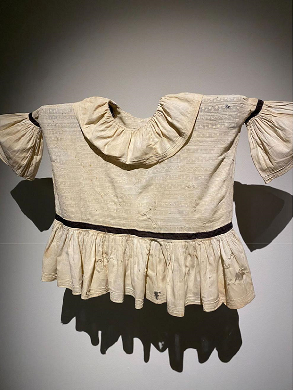 Dentro de las seis salas existió una crítica completa a los modos en los que se ha visualizado y visualiza el arte e imagen de los pueblos. Desde la colocación de uno de los objetos más característicos de la cultura prehispánica, que es un molcajete, dentro de una institución que se ha posicionado como el recinto de las Artes --sí, con A mayúscula-- y ha ignorado cualquier otra representación estética que no sea bajo cánones europeos. También se ve en la crítica el imaginario construido de los pueblos originarios por parte de los artistas de la ruptura. Un ejemplo son los cuadros Verdadero retrato Cuauhtémoc joven y Verdadero retrato Cuauhtémoc viejo de Diego Rivera. Otro aspecto que resaltó en la exposición fue en la sala de arte contemporáneo (Fig. 1), ya que muestra obra realizada por artistas que quieren que su obra sea expuesta en museos, además de mostrar las nuevas estéticas que devienen en las nuevas generaciones, así como la forma en la que quieren autorepresentarse. Por otro lado, una pieza que llamó mi atención fue Huipil de tapar principios siglo XX de la cultura slijuala xanuck en Oaxaca (Fig. 2). La razón de ello fue porque en ella se ve el paso del tiempo: el huipil no se nos presenta como algo en desuso, se ve con las marcas del tiempo --con remendados, hoyos y la tela percudida-- lo que, desde mi perspectiva, hace que el huipil se vea como realmente es, una prenda de vestir que es usada por mujeres. El grato impacto fue descubrir que había más piezas con esta intención, como Rebozo en proceso de la cultura bats’i vinik-antsetik, donde se aprecia el proceso como parte fundamental de la creación textil. De ese modo también se ofrece al espectador la posibilidad de entender el desarrollo y materiales de las piezas.