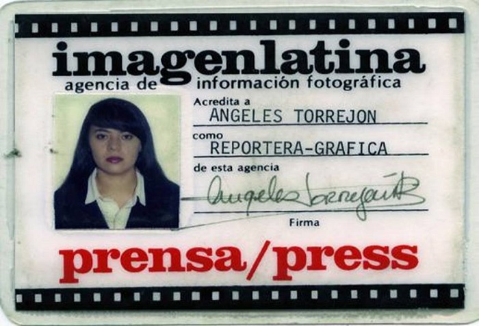 Torrejón resultó seleccionada como representante de Imagenlatina, así que tuvo oportunidad de compartir espacio con Darío López Mills, de la Associated Press (AP) y Raúl Ortega, de La Jornada. Unos minutos después del inicio de la rueda de prensa, el primero le pidió que le hiciera el favor de cuidar su lugar y su equipo fotográfico porque tenía que ausentarse por un momento. Ella pensó que la breve ausencia del fotorreportero había sido por necesidades fisiológicas, pero él, a su regreso siete minutos después, le comentó que se había retirado para enviar su material a su agencia.