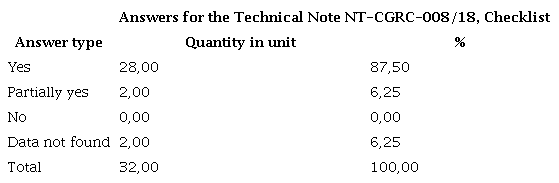 The answer "Data Not Found" was also accepted, as well as the answer "Partially Yes", when it was verified that the Technical Notes dealt with the subjects of some questions, but with a different criterion from what was expected.